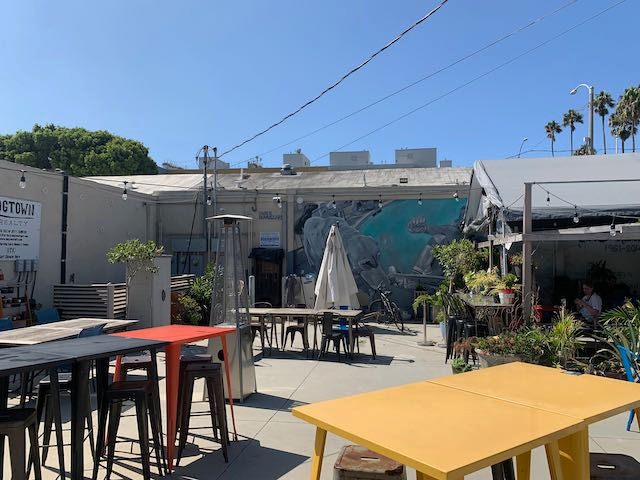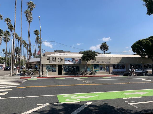 Dogtown Coffee has been a tenant in the northernmost space for the last 10 years. It consists of an 1285 SF incidental food use retail business and has an attached patio on its north edge and close to 500 SF of outdoor seating on the parking lot. The two unoccupied commercial spaces to its south are 1480 SF and 1540 SF.